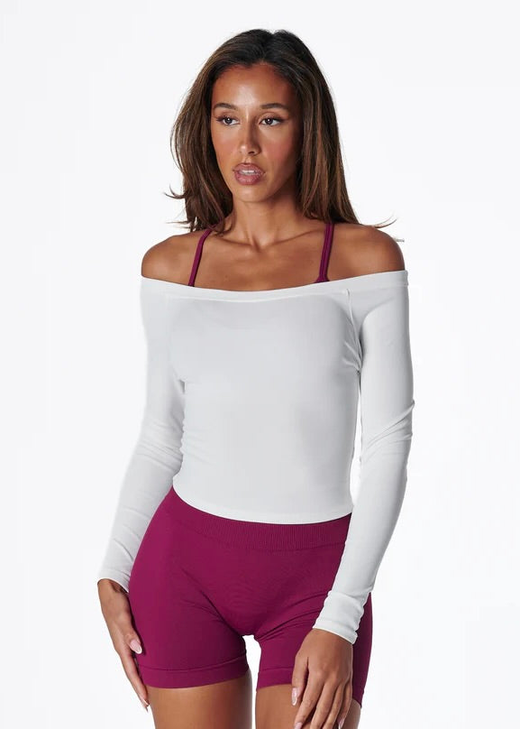 RIBBED OFF SHOULDER LONG SLEEVE - WHITE