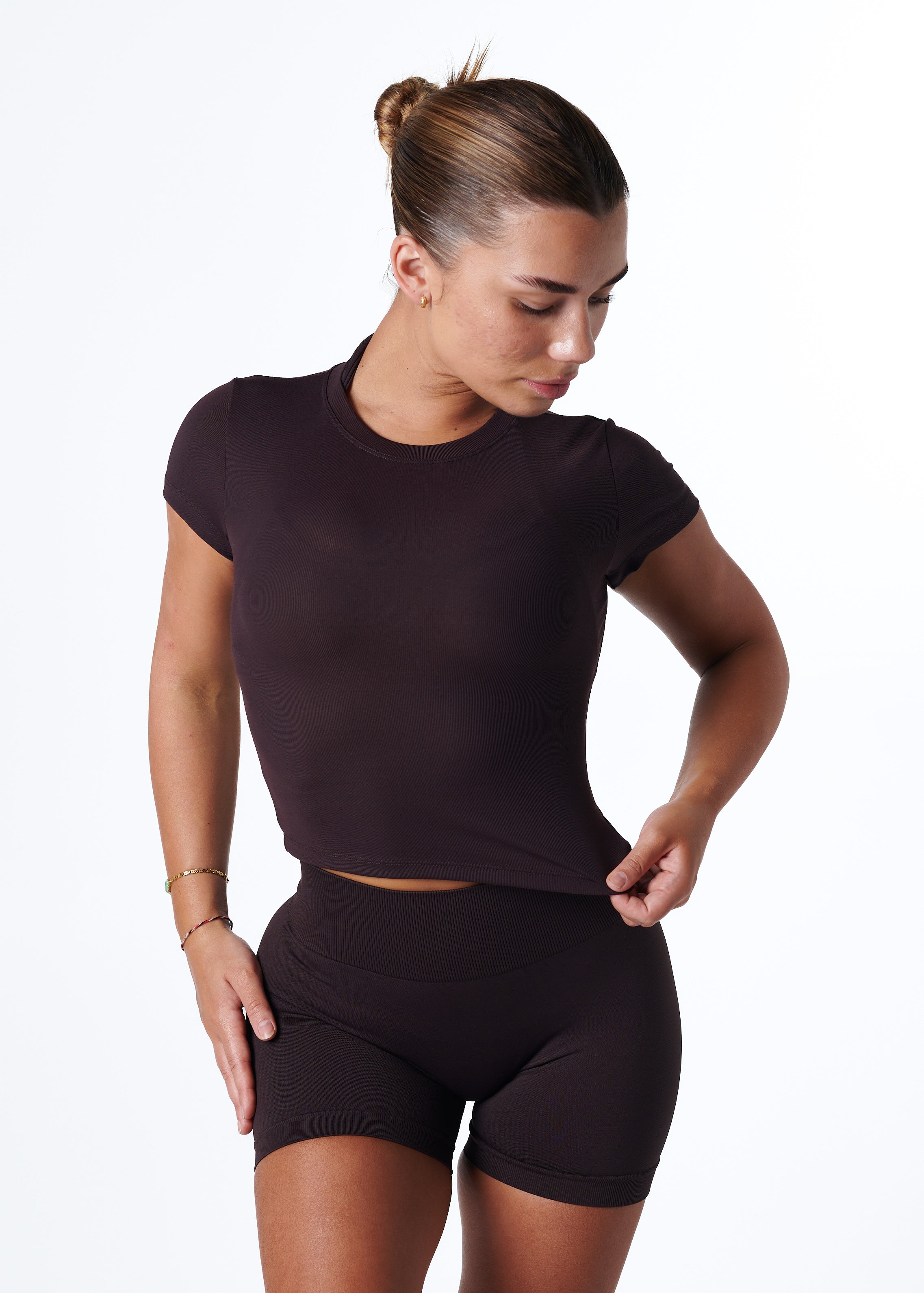 RIBBED BASIC TEE - ESPRESSO