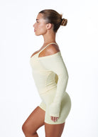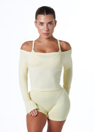 RIBBED OFF SHOULDER LONG SLEEVE - GLAZE
